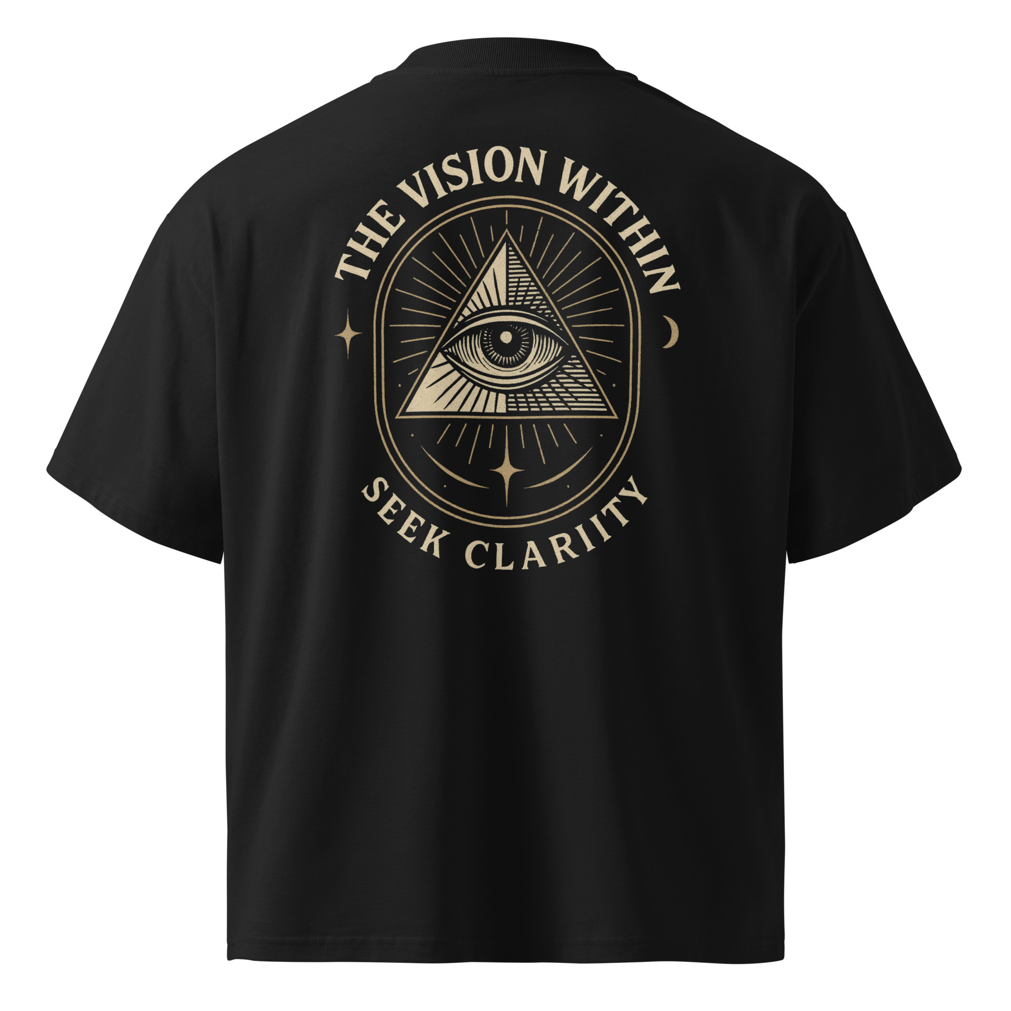 Dieses Oversized Streetwear T-Shirt mit Backprint-Design „The Vision Within – Seek Clarity“ steht für innere Stärke und Selbstreflexion.
